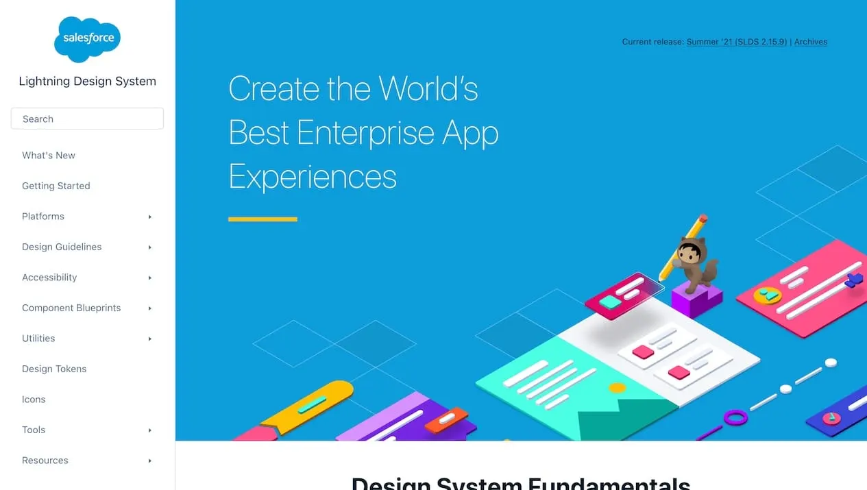 The Salesforce Lightning Design System includes resources and examples to create user interfaces consistent with the Salesforce Lightning principles, design language, and best practices. Rather than focusing on pixels, developers can focus on application logic, while designers can focus on user experience, interactions, and flows.